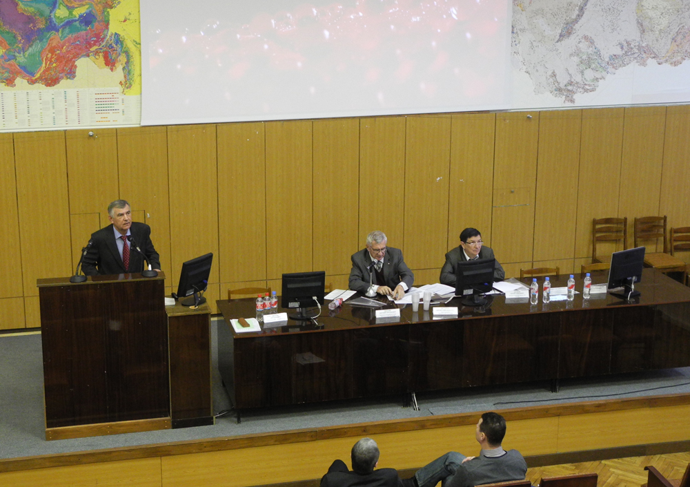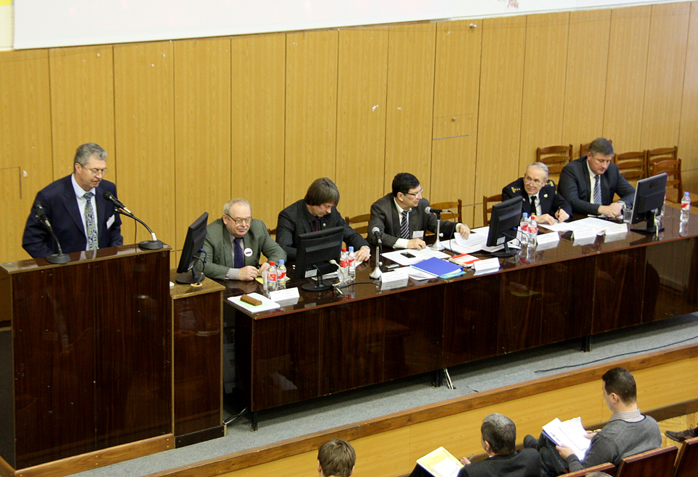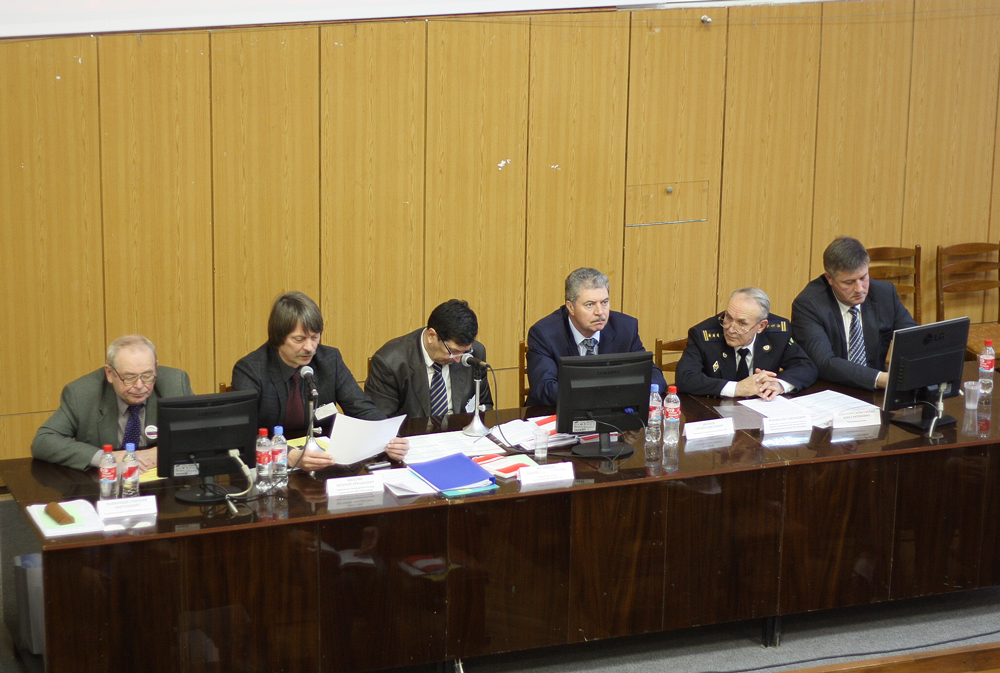 Президиум семинара "Опыт и нововведения в согласовании проектно-технической документации на разработку месторождений в ЦКР-ТПИ Роснедр" Слева направо: Машковцев Г. А., Киселев Е. А., Филиппов С. А., Аксенов С. А., Фокин О. А., Ходорович К. К. |