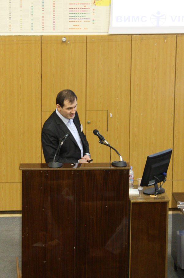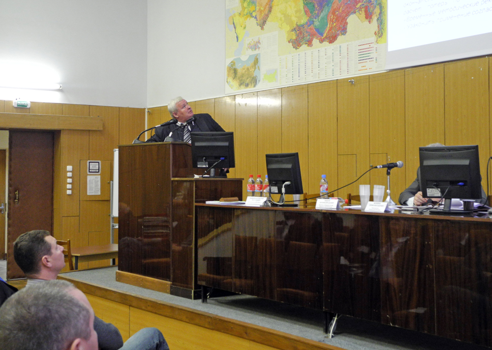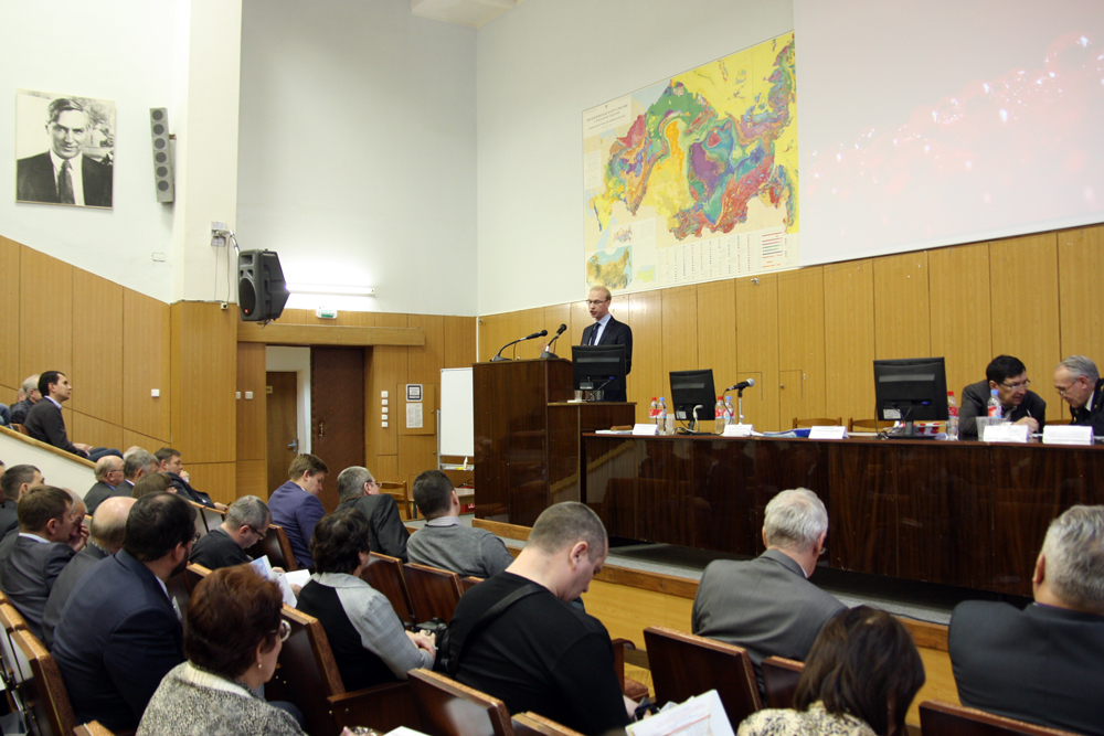 Выступает с докладом Василюк Павел Андреевич, начальник отдела методических основ оценки проектной и технической документации на разработку месторождений ТПИ «ФГУП «ВИМС»